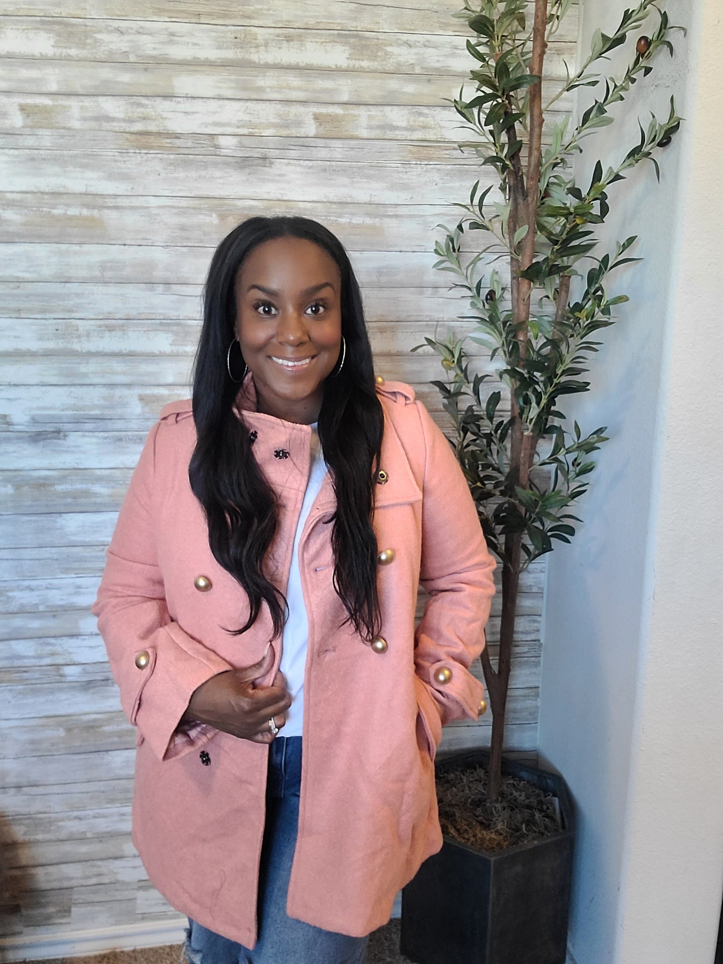 The classic Peacoat in pink! Super chic, heavy coat! Was only able to snag mediums in this jewel. This medium fits more like a M/L.